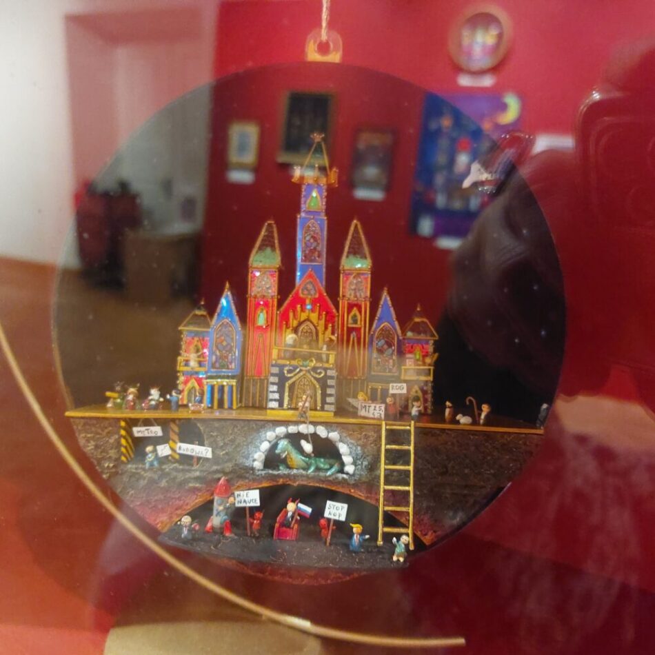 Årets utställning innehåller flera iögonfallande skapelser som kretsar kring flera olika teman. Bland dessa återfanns flera som skildrar kröningen av Polens första kung, Boleslav I kallad den tappre, som fick sätta kronan på sin skalp år 1025. Ett annat tema var konstnärskapet och en särskilt fin krubba var den som tillägnades två kvinnliga konstnärer. På ena sidan om julkrubban står Olga Boznańska, som föddes för 160 år i Kraków. Och på den andra sidan syns en rufsig Maria Jarema (1908-1958) stå vid sitt staffli och skapa en av sina abstrakta konstverk. Mellan de båda syns Jesusbarnet och hans föräldrar, några änglar, en tjusig dam i rött samt Jaremas skulptur tillägnad Chopin som nu står utanför Krakóws konserthus.