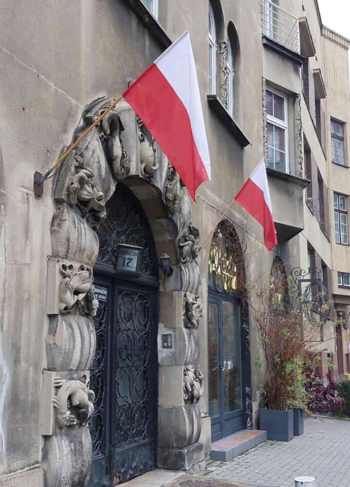 I det grå skymningsljuset vid Piłsudski-monumentet i Kraków har man tänt röda och vita lyktor, och lagt en bukett med rosor i samma färger på monumentets sockel. Ett ungt par stannar upp och kvinnan rättar till bukettens rödvita band, innan paret ställer sig vid statyn av landsfadern Józef Piłsudski. I den skumma belysningen flyter deras mörka fysionomier nästan in i monumentets konturer, som om de två förenade sig med Polens kamp för självständighet, en kamp som idag firas för den 117:e gången.