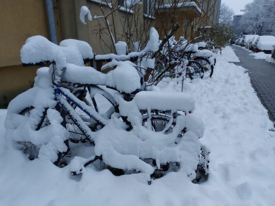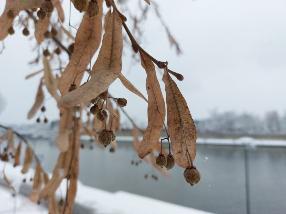 Under natten fick gårdagskvällens snöflingor sällskap av flera efterföljande släktingar. Beslutsamt singlade de ner över staden och tillsammans bildande de ett vitt men aningen fuktigt täcke, som resolut skylde varje rest av den gångna sommaren. Inte ens höstens dova färger lyckades tränga genom det vita täcket, förutom de som valt att dröja sig kvar på grenarna, likt lindens frukter och små bladvingar, iklädda mjukt gråbruna toner, som om de bar någon slags sorgflor över sommarens varma dagar.